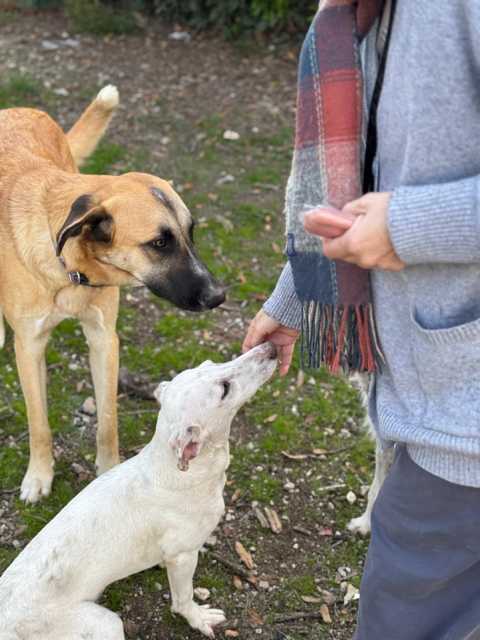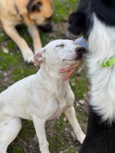 Paloma ist extrem freundlich, sanft und den Menschen zugewandt. Sie genießt Zuwendung und zeigt eine tiefe Dankbarkeit für jede liebevolle Geste.