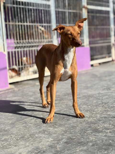 Mila ist eine lebensfrohe, menschenbezogene Podenca. Sie ist sozial, freundlich, offen und menschenbezogen und mit Artgenossen verträglich .