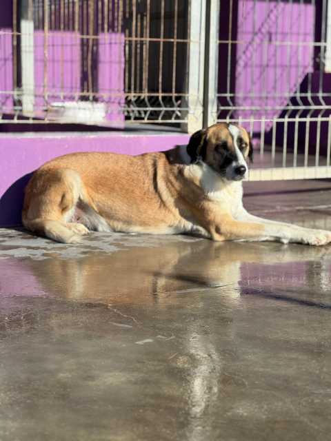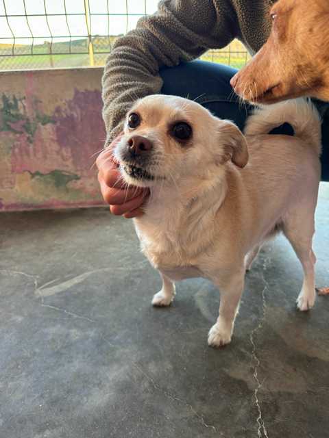 Joy wurde auf der Straße gefunden und konnte ganz problemlos gesichert werden. Schon dabei zeigte sie sich ruhig und ausgeglichen. Auch die Autofahrt meisterte sie entspannt, ohne Stress oder Unsicherheit. Im Refugio angekommen, ließ sie sich direkt und völlig unkompliziert in die große Hundegruppe integrieren.