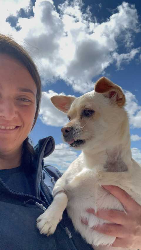 Nube liebt die Nähe zu Menschen. Sie genießt jede Streicheleinheit in vollen Zügen und sucht aktiv den Kontakt, um sich Zuneigung und Geborgenheit abzuholen. Für sie gibt es kaum etwas Schöneres, als Zeit mit „ihren“ Menschen zu verbringen. Wenn sie gerade nicht kuschelt, spielt sie ausgelassen mit den anderen Hunden der Pflegestelle.