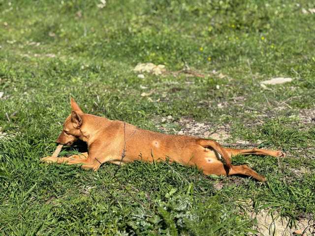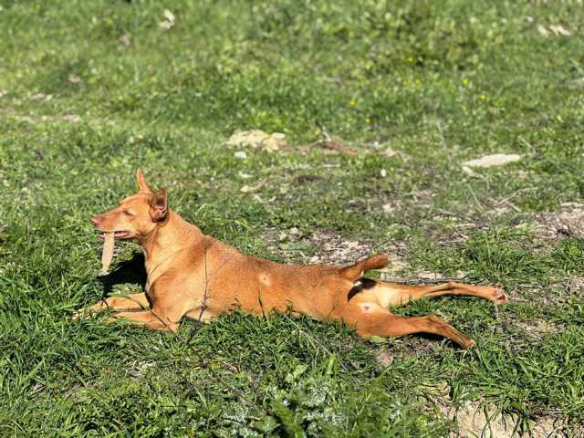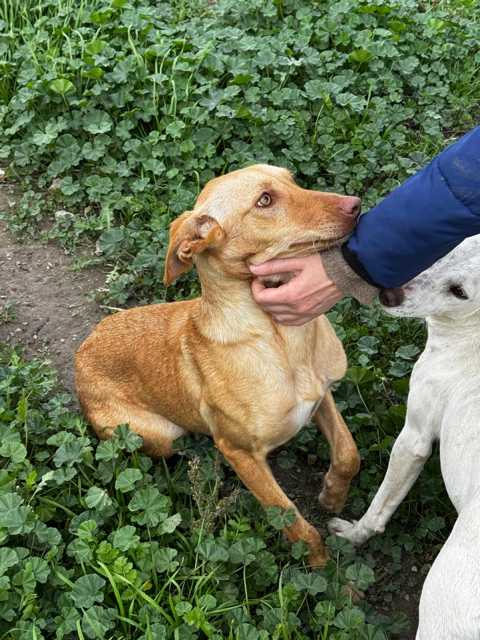 Desirée ist eine Podenca, die in einem Gebiet gefunden wurde, in dem häufig Jagdhunde ausgesetzt werden. Nach ihrer Sicherung lebt sie derzeit in einem sicher umzäunten Olivenhain zusammen mit mehreren anderen Hunden. Eine Hütte bietet Schutz vor Witterungseinflüssen. Sie wird zuverlässig von engagierten Menschen versorgt und tierärztlich betreut.
