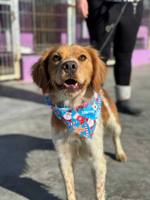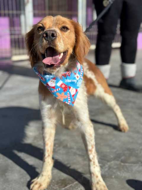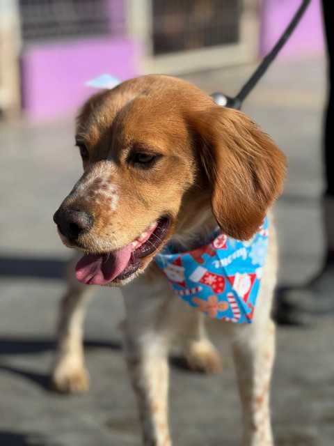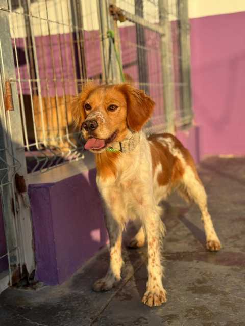 Brownie ist ein schöner Jagdhundrüde, der eine Zeit lang auf der Straße lebte. Er wurde dort angefüttert und zeigte sich von Anfang an freundlich und zugänglich. Die Sicherung verlief problemlos, da Brownie dem Menschen gegenüber keine Scheu zeigte und schnell Vertrauen fasste.