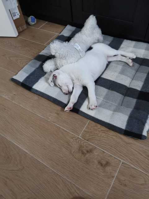 Angelo ist die Ruhe in Person. Ein absolut entspannter kleiner Kerl! Egal, ob er schläft, jemand versehentlich auf ihn tritt oder andere Hunde um ihn herum bellen, er bleibt einfach gelassen und konzentriert sich nur auf das, was ihm wirklich wichtig ist. Angelo ist super sozial, liebt Menschen und Hunde… aber gleichzeitig kümmert es ihn auch nicht besonders, ob jemand da ist oder nicht. Ein kleiner Freigeist, der mit allem zufrieden ist. Dafür ist er extrem verschmust. Er wirft sich gerne auf den Rücken, nur um ein paar liebevolle Streicheleinheiten zu bekommen.